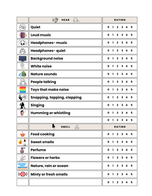 Sensory and Self Regulation Checklist