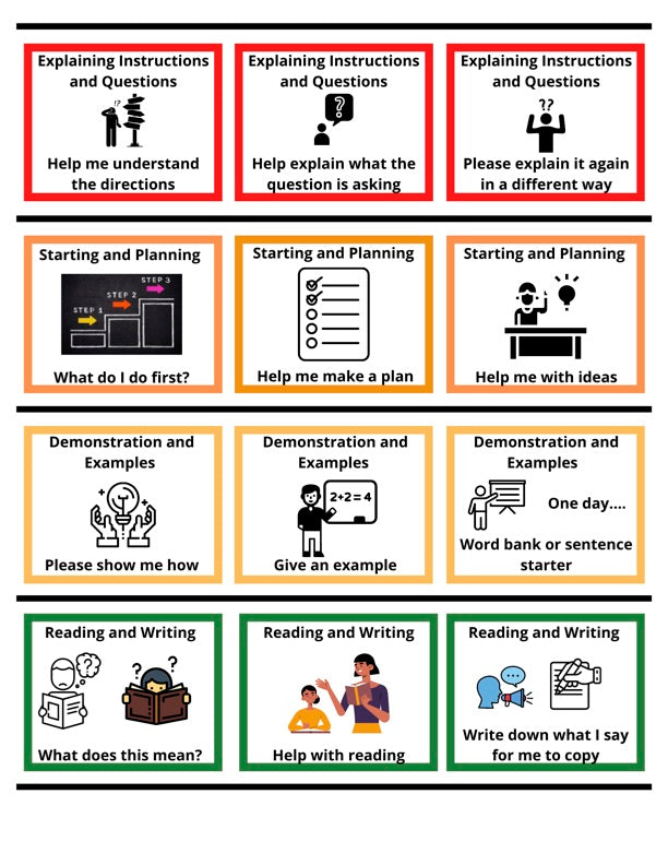 This visual is a great resource for helping kids to identify what type of help they need. There are 8 categories: