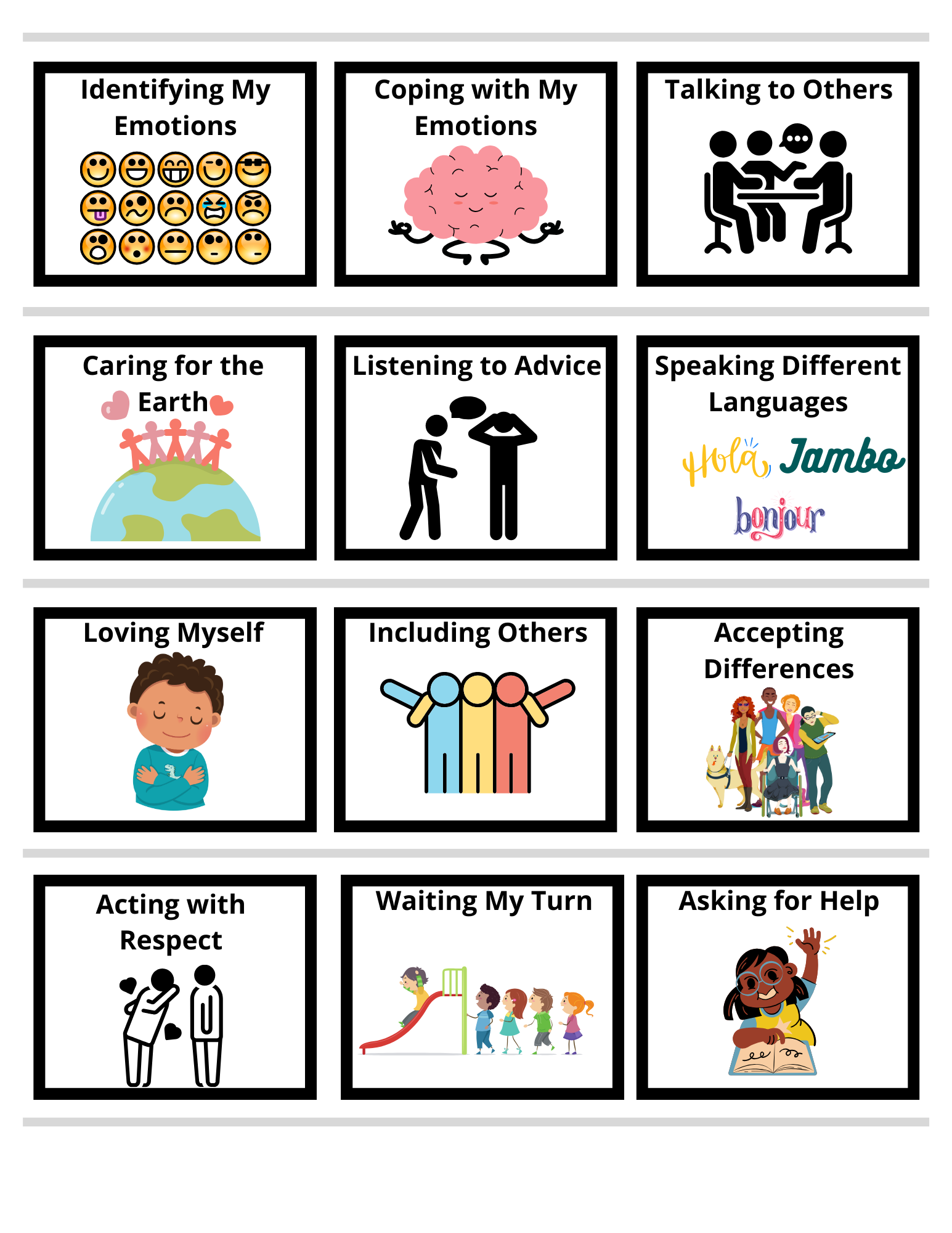 Strength-based goals and planning can be essential to child success and yet kids often struggle with identifying their own strengths due to language impairment, or decreased self-efficacy, self esteem, or self-awareness. This visual can be used as a strength "menu" or cut into a deck of cards to help kids recognize their strengths and identify areas they want to build and grow.